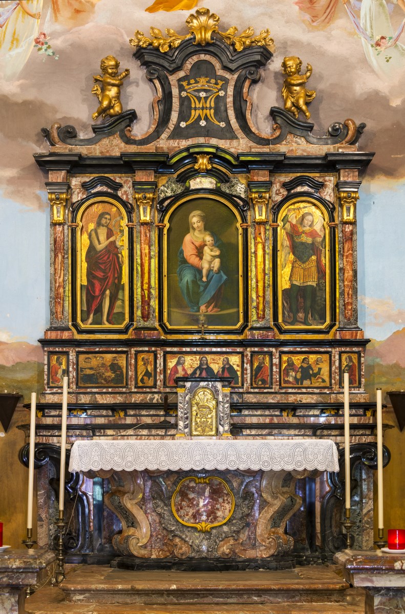 dell’altare maggiore. Il comparto centrale è una Madonna con Bambino, commissionata da un altro membro della