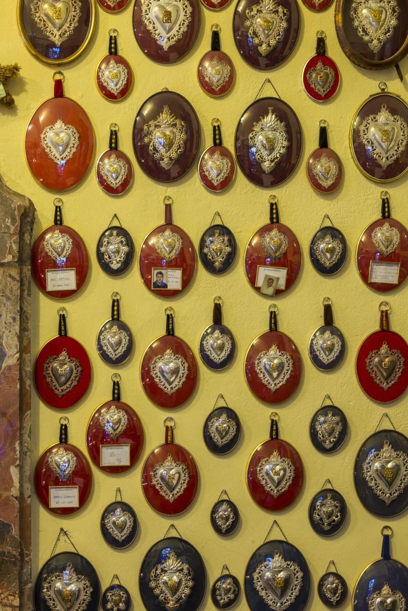 La facciata è preceduta da un portico, sul fronte del quale sono stati posti tre mosaici di fattura recente; quello centrale riproduce l’affresco conservato all’interno del santuario. Lungo il fianco sinistro si notano il locale della sacrestia, che fuoriesce dal corpo principale, e il campanile.